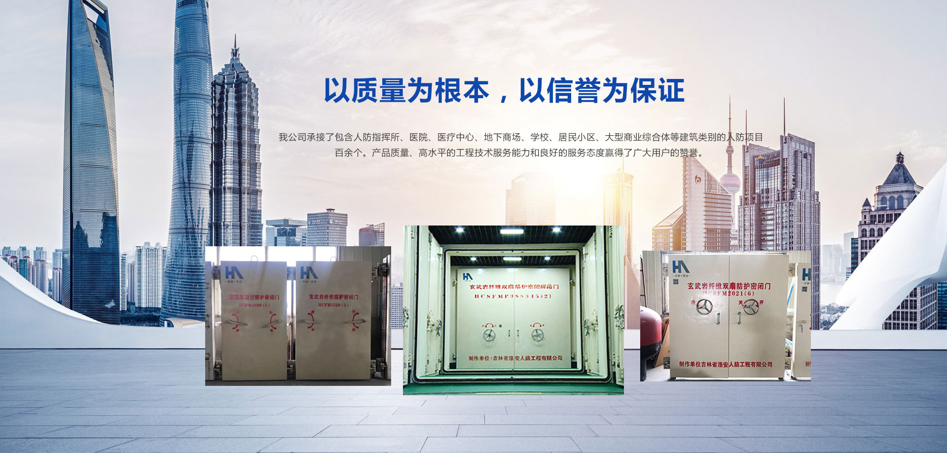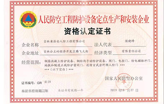 吉林省浩安人防工程有限公司是經(jīng)國(guó)家人民防空辦公室批準(zhǔn)成立的人防工程防護(hù)設(shè)備定點(diǎn)生產(chǎn)廠,2019年認(rèn)定為國(guó)家級(jí)高新技術(shù)企業(yè)。本廠擁有現(xiàn)代化的廠房及先進(jìn)的生產(chǎn)設(shè)備,集生產(chǎn)制造、質(zhì)量控制、銷(xiāo)售服務(wù)為一體的區(qū)域性行業(yè)廠。公司座落在吉林省公主嶺經(jīng)濟(jì)開(kāi)發(fā)區(qū),占地面積達(dá)10000平方米,辦公樓1200平方米,廠房建筑面積達(dá)6000平方米以上,注冊(cè)資金1000萬(wàn)元,企業(yè)的技術(shù)力量雄厚,其中防護(hù)工程師,高級(jí)工程師及中高級(jí)專業(yè)技術(shù)人員占30%。青海分公司2018年10月15日成立,于當(dāng)年11月26日通過(guò) 青海人民防空辦公室備案公示。 本廠經(jīng)營(yíng)的主要產(chǎn)品:連續(xù)玄武巖纖維新型人防防護(hù)門(mén)、鋼結(jié)構(gòu)人防防護(hù)門(mén)、鋼筋混凝土人防防護(hù)門(mén)以及各種型號(hào)的通風(fēng)設(shè)備和防化設(shè)備。本廠生產(chǎn)設(shè)備齊全,擁有雄厚的生產(chǎn)能力和技術(shù)水平,并嚴(yán)格按照國(guó)家相關(guān)標(biāo)準(zhǔn)生產(chǎn)和安裝。2015年5月15日正式開(kāi)業(yè)至今,承接吉林省人防工程項(xiàng)目上百項(xiàng),總施工面積超過(guò)百萬(wàn)平方米。工程項(xiàng)目包含人防指揮所、醫(yī)院、地下商場(chǎng)、商場(chǎng)、學(xué)